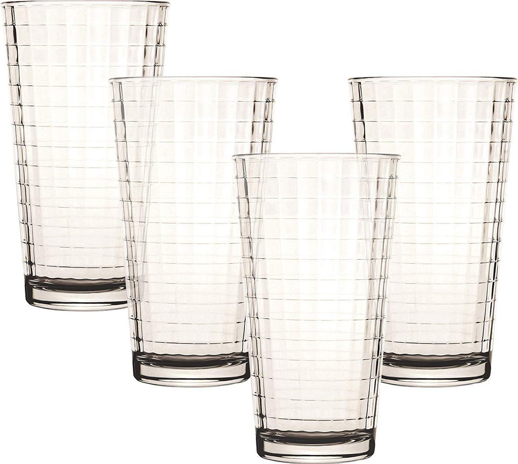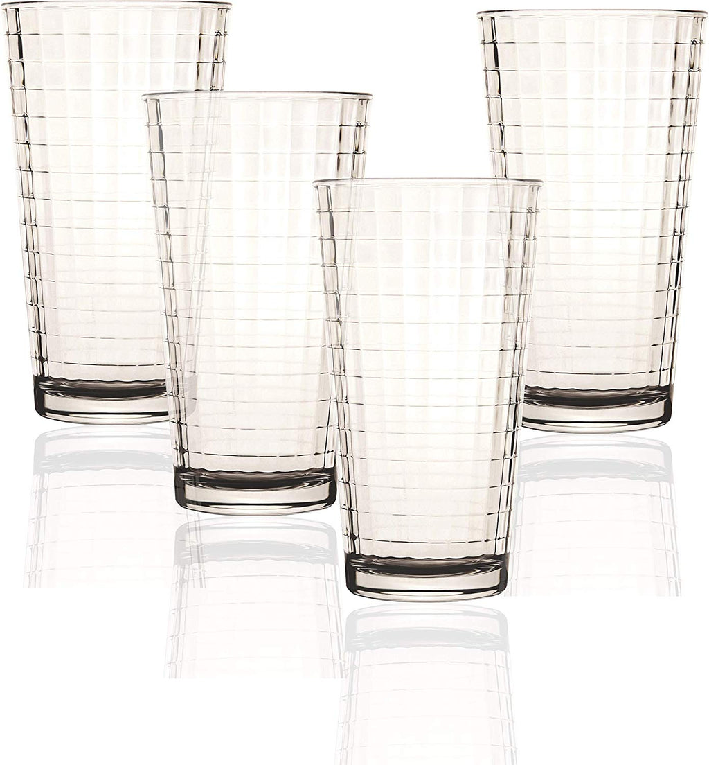 Enjoy your favorite, refreshing beverages in the most stylish drinking glasses. The Matrix 4-Piece Drinkware Glass Set is the perfect glass set as it does not contain any harmful chemicals such as BPA, phthalate, PVC, or polycarbonate. This glass set is made from sturdy and durable glass that allows the color of the beverage to shine. The elegant look of these glasses can add to any table’s aesthetic with their contemporary design. The unique glass shape enhances the beverages aromas and flavors. Perfect for smoothies, juices, soda and more of your favorite drinks. Shaped to be an all-purpose glass, the base of this glass provides maximum stability to prevent mishaps. Why choose a glass over plastic? It allows you to sip colder and more pure-tasting water, looks sleek and elegant, and is thicker and sturdier than plastic. Glass is also better for the planet: made from all-natural, sustainable raw materials, glass is 100% recyclable and can be reused endlessly. Suitable for kitchen, cafes, hotel, restaurant, bar, and everyday home use. Features a chic and classic striped square design on the glass. A look that is appealing to those who love both traditional and modern designs. Enjoy this beautifully sculpted glass set and elevate your drinking experience. COLOR: Clear. CONTENTS: 4 Glasses. CAPACITY: 15.75 Ounces.