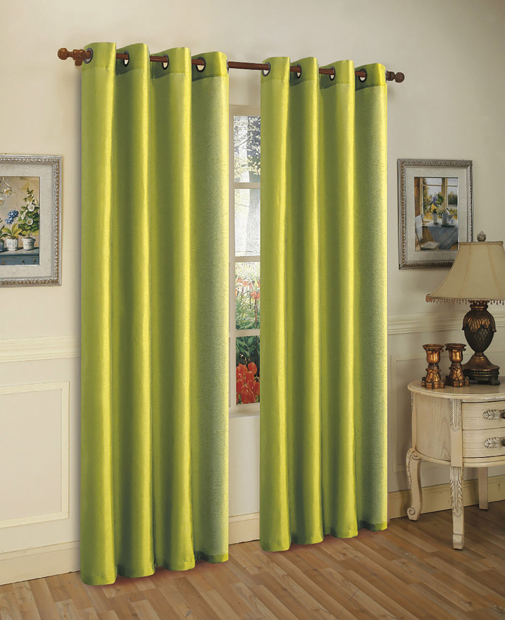 Transform any room in your home with the Melanie Faux Silk 8 Grommet window Panel. These panels are perfect for you to add style and a decorative flair to your area. Its fabric has a beautiful sheen to it, mix that with the vibrant color will make these an eye-catcher! Faux silk is the perfect for you to create a textured surface that feels like silk. The bright hues compliment your existing decor while liven up your area and bringing personality. These panels will be your new favorite item in your house! The Melanie Faux Silk Grommet panel will filter the light from passing through all day. Made of 100% polyester, the fibers are strong and won't wear down as quickly while being flexible and resistant to wrinkles and shrinking. Polyester is also hydrophobic so the panels will dry quickly when wet. Add style, privacy and the right amount of light to enter your home. MATERIAL: 100% Polyester. CARE: Machine wash in cold water at gentle cycle, using mild detergent, Tumble dry low. Do not bleach. Wash separately. Do not use fabric softener. CONTENTS: Picture shows 2 Panels, Package contains 1. DIMENSIONS: 55x95 Inches. COLOR: Lime Green.