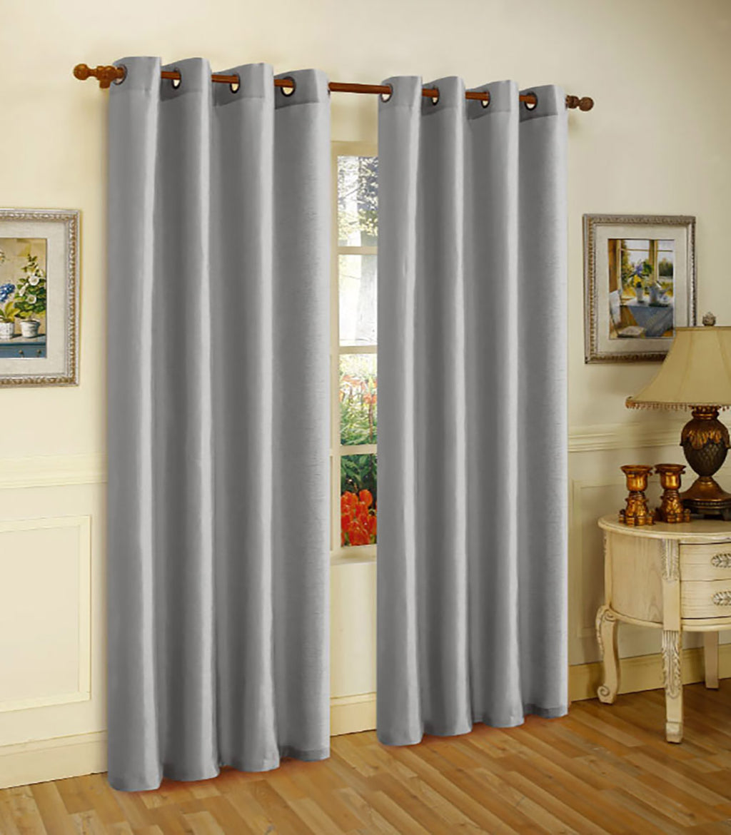Transform any room in your home with the Melanie Faux Silk 8 Grommet window Panel. These panels are perfect for you to add style and a decorative flair to your area. Its fabric has a beautiful sheen to it, mix that with the vibrant color will make these an eye-catcher! Faux silk is the perfect for you to create a textured surface that feels like silk. The bright hues compliment your existing decor while liven up your area and bringing personality. These panels will be your new favorite item in your house! The Melanie Faux Silk Grommet panel will filter the light from passing through all day. Made of 100% polyester, the fibers are strong and won't wear down as quickly while being flexible and resistant to wrinkles and shrinking. Polyester is also hydrophobic so the panels will dry quickly when wet. Add style, privacy and the right amount of light to enter your home. MATERIAL: 100% Polyester. CARE: Machine wash in cold water at gentle cycle, using mild detergent, Tumble dry low. Do not bleach. Wash separately. Do not use fabric softener. CONTENTS: Picture shows 2 Panels, Package contains 1. DIMENSIONS: 55x95 Inches. COLOR: Silver.