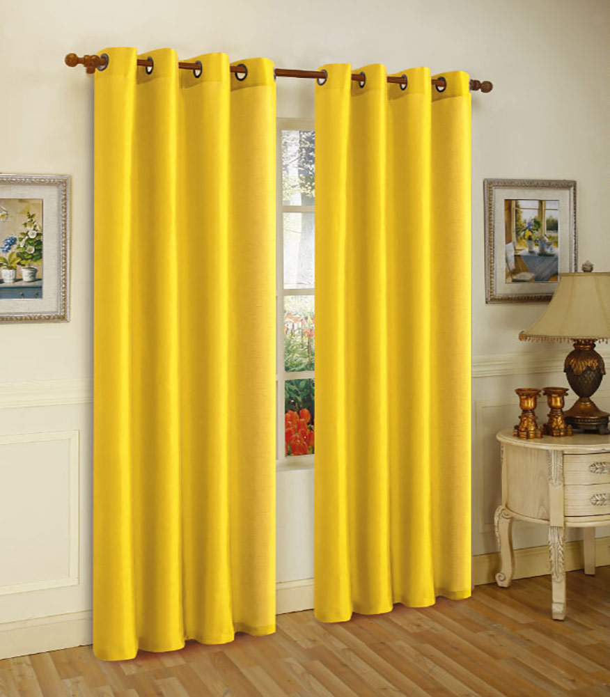 Faux silk panel with 8 bronze grommets will enhance the look of your home. Picture shows two, package contains one. Made with 100% Polyester, Machine wash cold on gently cycle. Do not bleach, dry on low setting, Cool touch up iron if desired, hang dry is also recommended. Color: Bright Yellow. Size: 55" x 63".