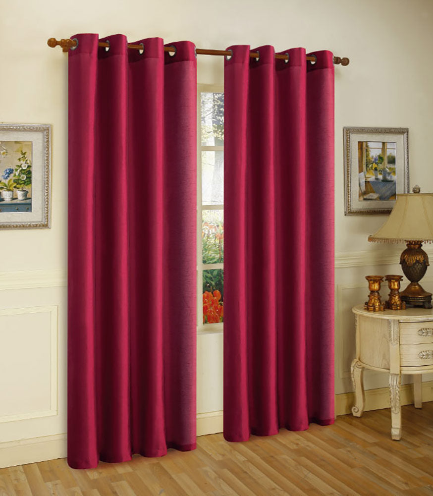 Faux silk panel with 8 bronze grommets will enhance the look of your home. Picture shows two, package contains one. Made with 100% Polyester, Machine wash cold on gently cycle. Do not bleach, dry on low setting, Cool touch up iron if desired, hang dry is also recommended. Color: Burgundy. Size: 55" x 84".