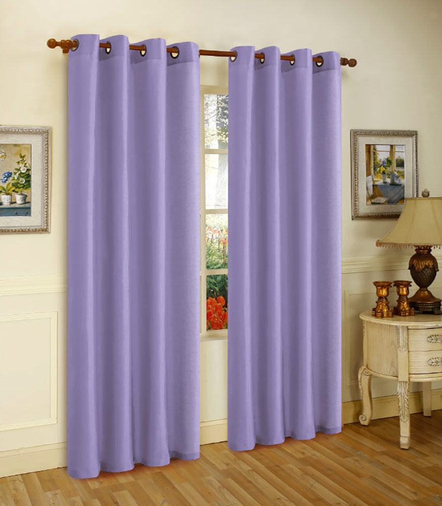 Faux silk panel with 8 bronze grommets will enhance the look of your home. Picture shows two, package contains one. Made with 100% Polyester, Machine wash cold on gently cycle. Do not bleach, dry on low setting, Cool touch up iron if desired, hang dry is also recommended. Color: Lilac. Size: 55" x 63".