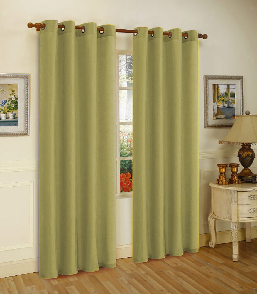 Faux silk panel with 8 bronze grommets will enhance the look of your home. Picture shows two, package contains one. Made with 100% Polyester, Machine wash cold on gently cycle. Do not bleach, dry on low setting, Cool touch up iron if desired, hang dry is also recommended. Color: Olive. Size: 55" x 63".