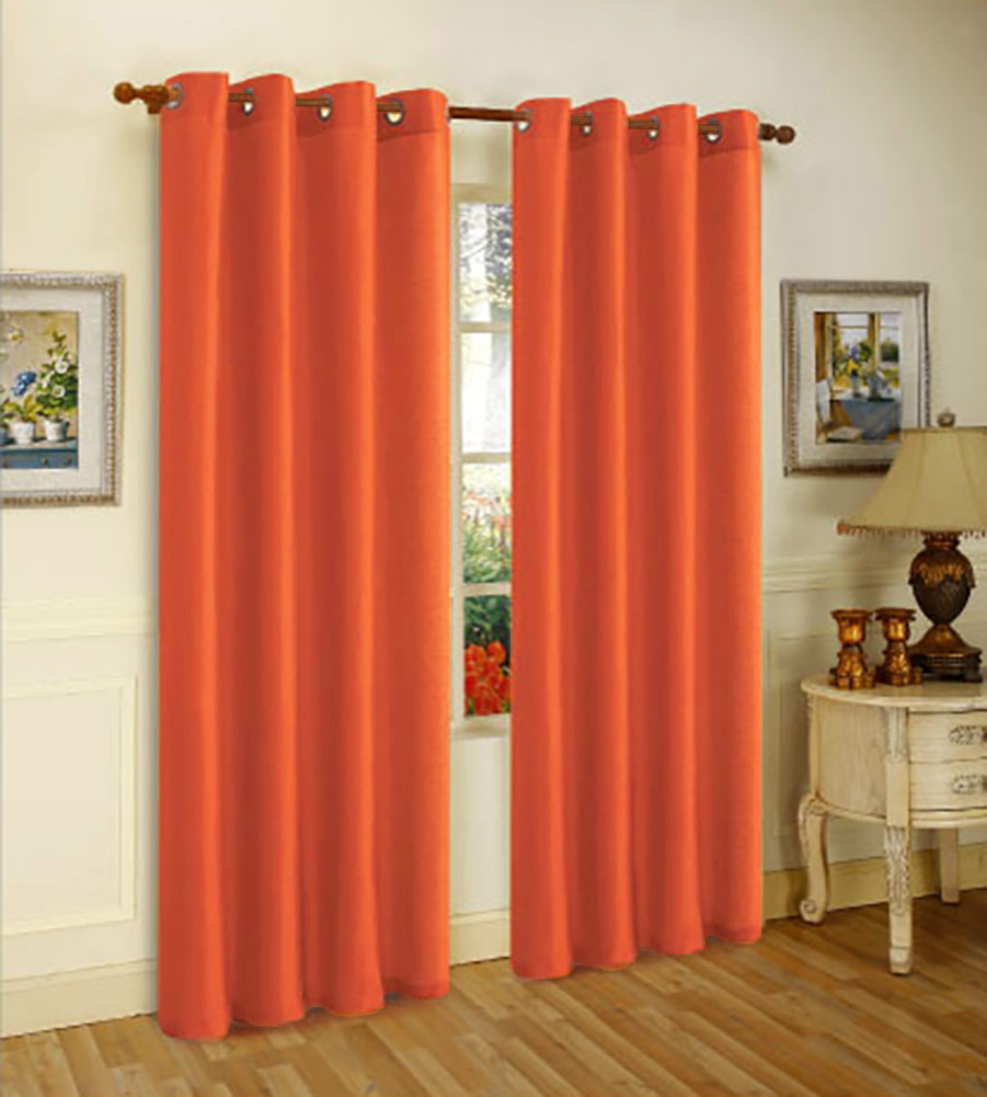 Faux silk panel with 8 bronze grommets will enhance the look of your home. Picture shows two, package contains one. Made with 100% Polyester, Machine wash cold on gently cycle. Do not bleach, dry on low setting, Cool touch up iron if desired, hang dry is also recommended. Color: Terracotta. Size: 55" x 63".