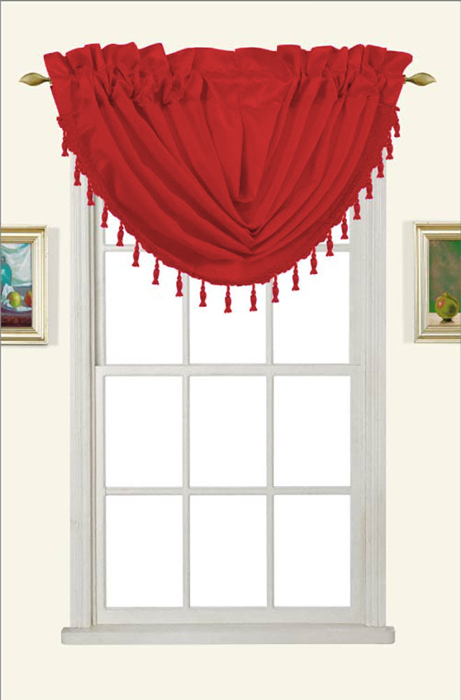 Melanie Faux Silk Rod Pocket Waterfall Valance With Tassels, Claret, 58x37
