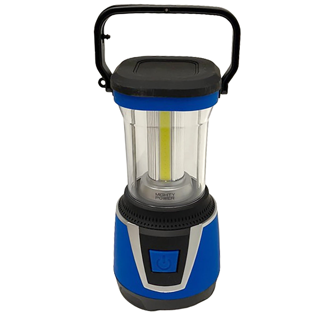 Whether you like going on outdoor adventures or need a light to get some work done indoors, this Mighty Power 3D Led Camping Lantern With Rubber Base will come in handy. This Ultra-Bright lantern is all you need for nights or darkness when there is a power outage and any other unexpected situation. Perfect for auto emergencies like dangerous night-time breakdowns. Great for preppers survival first aid emergency kit. Always be prepared for when the lights go out and you have to rely on yourself. Perfect for kids playing in the backyard, child's summer camp or tabletop picnic on the patio. Brighten up evening dinners on the deck and dog walks in the dark. This extremely bright 3D-LED light will brighten up your yard, pathway, walkway, or any place you choose. This camping lantern has an unbelievably long runtime of up to 36 hours at its lowest light mode. The COB light technology of the battery lantern produces higher brightness of up to 750 Lumens and points a wider beam of light in all 360°directions. There are 4 different light modes to choose from, High-750 Lumens, Medium-550 Lumens, Low-350 Lumens and Nightlight-150 Lumens to suit your needs. The ON/OFF button allows you to easily cycle through the lighting modes. Made of high quality materials, it is sturdy and durable, suitable for camping, hiking, fishing, and any outdoor adventure. Comes with a sturdy and durable rubber base that can handle slippery on uneven surfaces. The camping lantern also comes with a hook and handle. The handle helps you to carry it with you wherever you go, and the hanging hook allows the lamp to be hung easily from a tree, tent pole, stand, etc. Operated by 3 D batteries (included). COLOR: Blue-Black