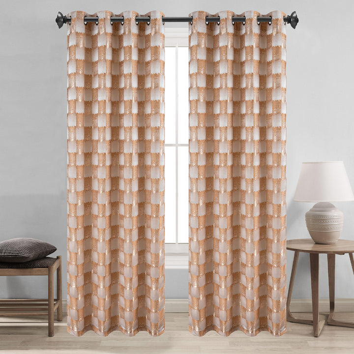 Transform your windows into a realm of contemporary artistry with the Noelle Checkered Geometric Jacquard Grommet Window Curtain Panel. Available at Shop Bobbys, your trusted online department store for exceptional home goods, these exquisite panels promise to redefine your interior aesthetic. The intricately woven checkered pattern filters sunlight, casting a warm, inviting glow that imbues your space with an air of refined elegance. A curated palette of rich, evocative hues—luminous silver, deep navy, rich hunter green, sumptuous burgundy, opulent gold, and earthy brown—offers a versatile canvas for your design aspirations. The polished grommet top facilitates a fluid and effortless installation, guaranteeing graceful, cascading folds that drape with an air of understated luxury, transforming your windows into breathtaking expressions of contemporary sophistication. Order yours today!