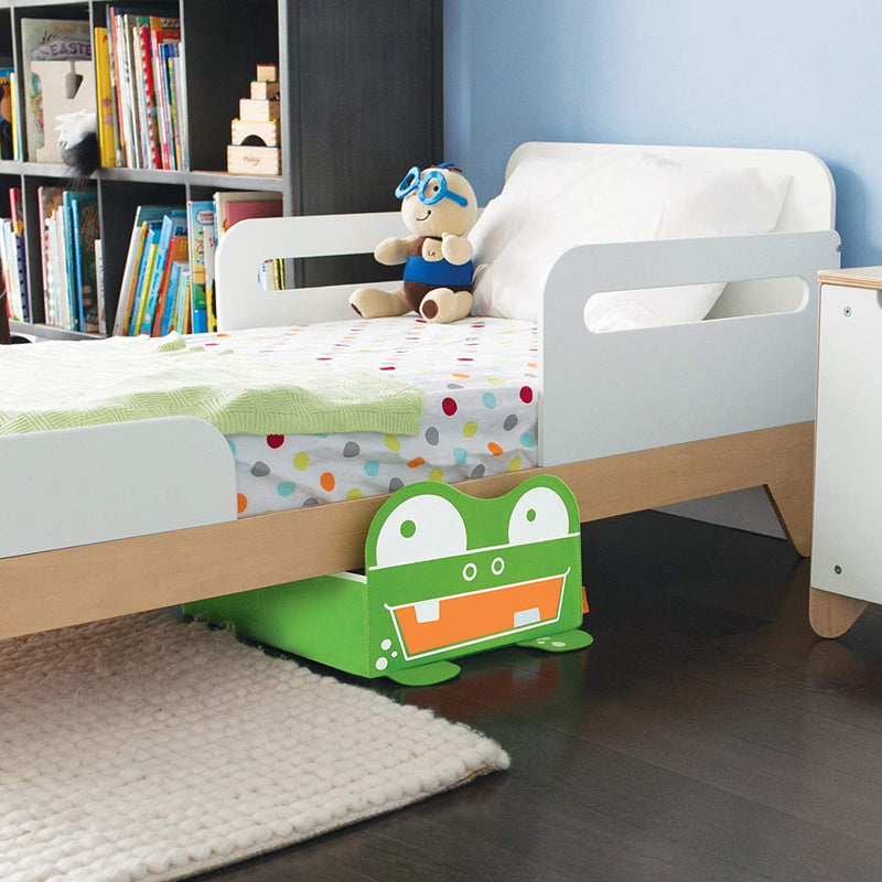 Having scary unhelpful monsters under your bed? Well not anymore! Help your child become more organized with this space saving storage bin! Perfect for storing your books toys, shoes and anything else you can find! Help your child maximize space in their bedroom space with the P'kolino Mess Eaters Under-The-Bed Storage Bin. This storage bin is great for more room for fun while keeping the room clean. Each storage bin comes with a playful personality. Comes with 1 storage bin per package. Recommended for children 3 years and older. Color: Green. Size of Bin: 17x13x4.8 (Size with Eyes: 17x13x8.75 Inches.)
