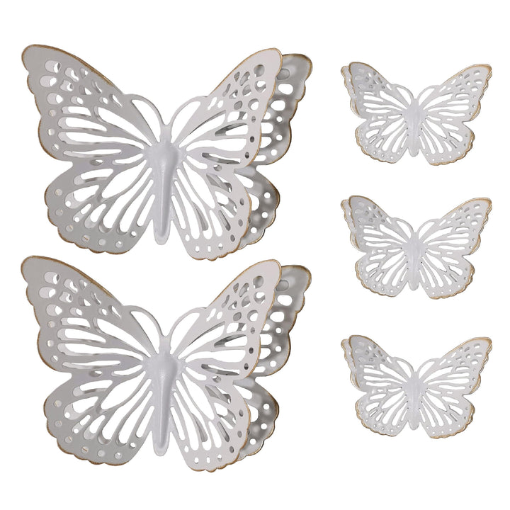 • Set includes: 5 White-Gold-colored metal butterfly wall decor pieces