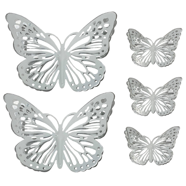 PREMIUS 5 Piece Metal Butterfly Wall Decor Set, White-Silver, (3) 6 Inches, (2) 12 Inches