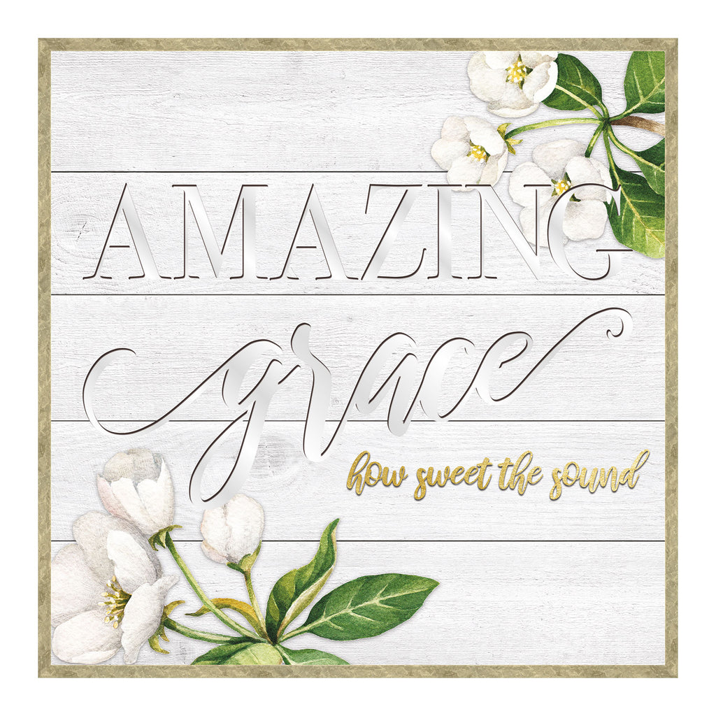 Premius Gracious Quotes Framed Wall Decor With Mirror Cut-Outs, Amazing Grace, 12x12 Inches