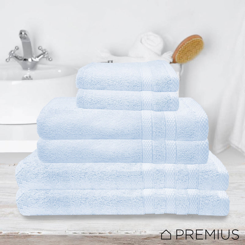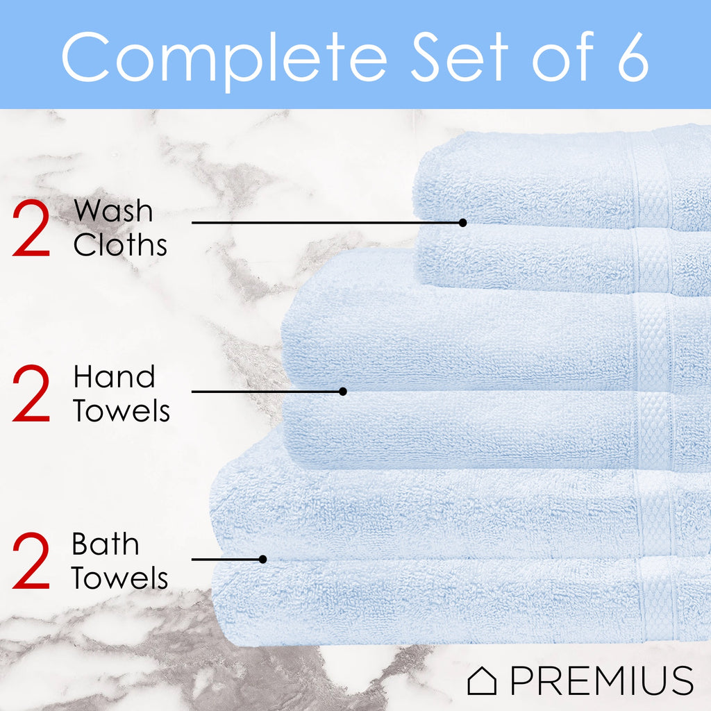 Premius Premium 6-Piece Combed Cotton Bath Towel Set, Sky Blue