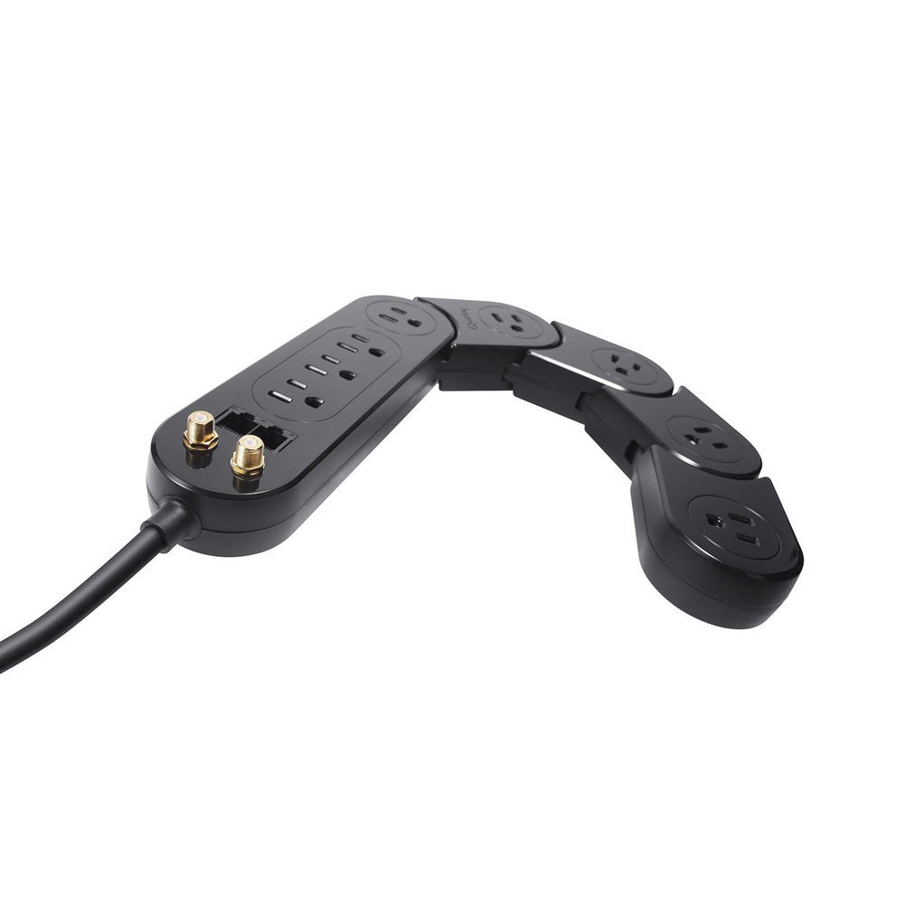 Quirky Pivot Flexible power media with eight pivoting outlets it is designed for gamers, media junkies, and entertainment addicts, Pivot Power Media is a fully loaded upgrade to our popular power strip. Outfitted with eight AC ports, phone/Internet hookups, and an F-Coax input/output, this souped-up surge protector will power and protect every gizmo and gadget in your entertaining arsenal. Color: Black.