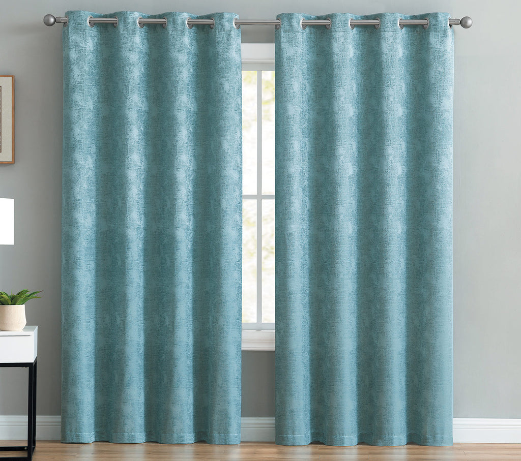 Transform and add style to any bedroom, dining room or family room with the Rosalie metallic jacquard grommet Style Panel by Victoria Classic. These beautiful grommet style curtains are an easy and inexpensive way to add fashion and function to your home. Featuring a solid colored teal fabric jacquard with alternating matte and metallic pattern design. These beautiful panels are perfect for giving a dramatic and modern accent to any decor any room in your home! These elegant curtains are designed to be draped a little above the floor to give a modern look to your windows décor. The fabric allows light to flow through the room and create a sense of privacy as well. These curtains also feature grommet hanging style to make installation a breeze. ROD THICKNESS: 1.5 Inches. MATERIALS: 100% Polyester. COLOR: Teal. CARE INSTRUCTIONS: Dry Clean Only. CONTENTS: Picture shows 2 panels, Package contains 2 panel. DIMENSIONS: Each panel measures 37x84 Inches, Total 74x84 Inches.
