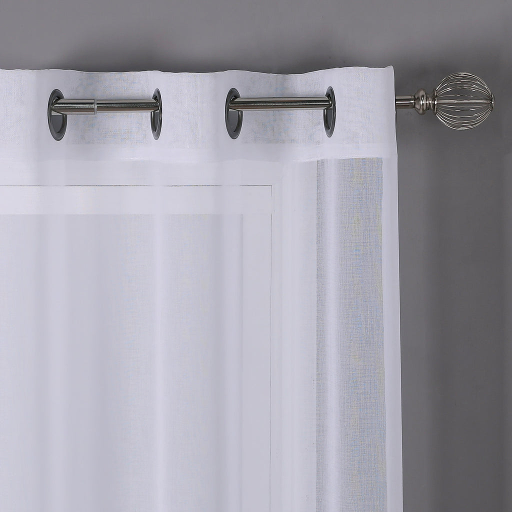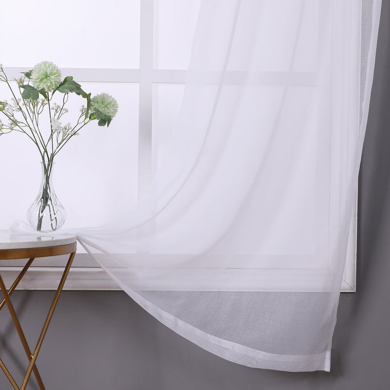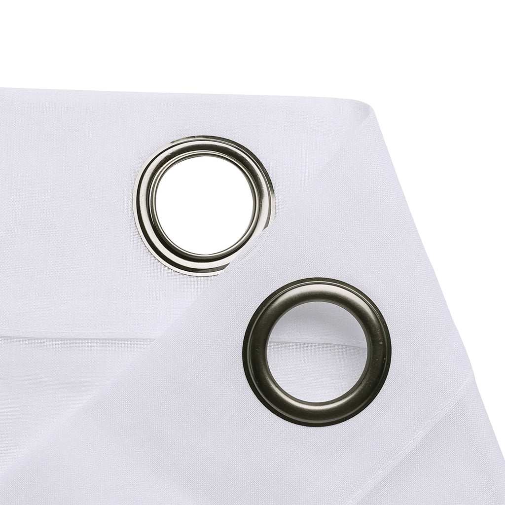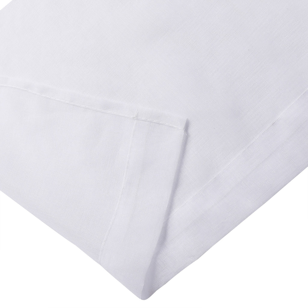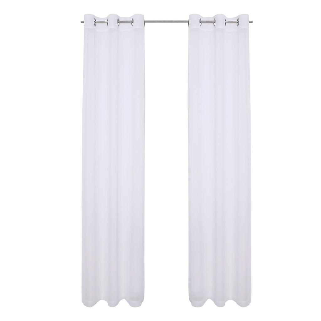 Take your sheers to the next level of elegance with the Sheffield 2-Pack Solid Sheer Grommet Window Panel. The airy sheer fabric with classic solid pattern adds elegance and charm to both modern and casual decor styles. These beautiful sheer panels are a great choice for anyone seeking a simple yet elegant look for their rooms. Perfect for filtering the light and create an amazing ambiance in your rooms. These panels are designed to let lots of natural light stream through the window to brighten up your room while still offering privacy. Deeply impress your friends, family, and guests by hanging these lovely sheer panels anywhere you would like to hand a beautiful panel and see how the flawless sheerness of this panel adds an ethereal touch of elegance to your home or party space. Perfect for your bedroom, living room, dining room, or any other living space. Made of sturdy and durable 100% polyester fabric that is built to last, providing endless beauty to your home. Resistant to wrinkles, shrinking, mold and mildew. It will look equally good in both formal and informal spaces. You can even add a twist on your decor by adding some printed curtains between the sheer panels, or use them alone for a touch of elegant simplicity. It comes with 6 gunmetal gray grommets to make the hanging process a breeze as. It has 1.6 inch internal diameter which perfectly fits most decorative rods of your choice and saves your time of installation. CARE: Use cold temperature with gentle cycle. Use only non-chlorine bleach when needed. Tumble dry with low speed. Iron on the lowest setting if needed. MATERIAL: 100% Polyester. INCLUDES: (2) 38x84 Inches Panels. SIZE: 76x84 Inches. COLOR: White