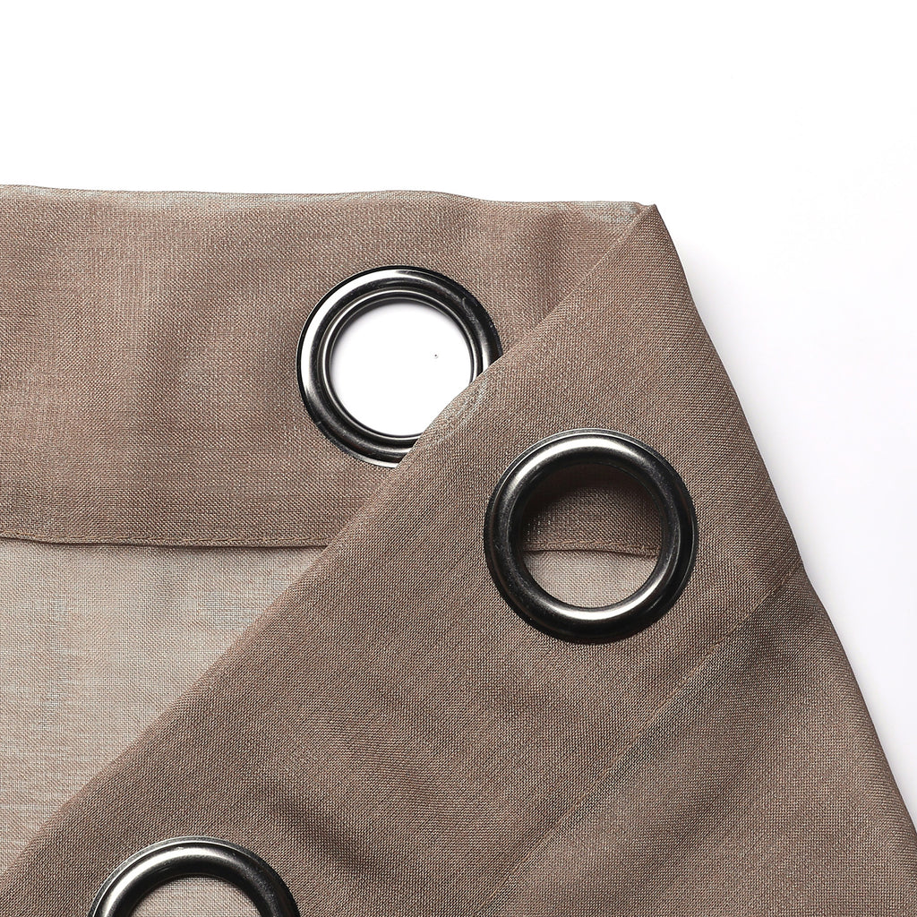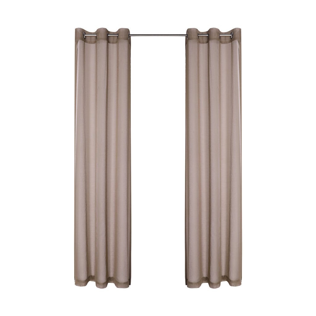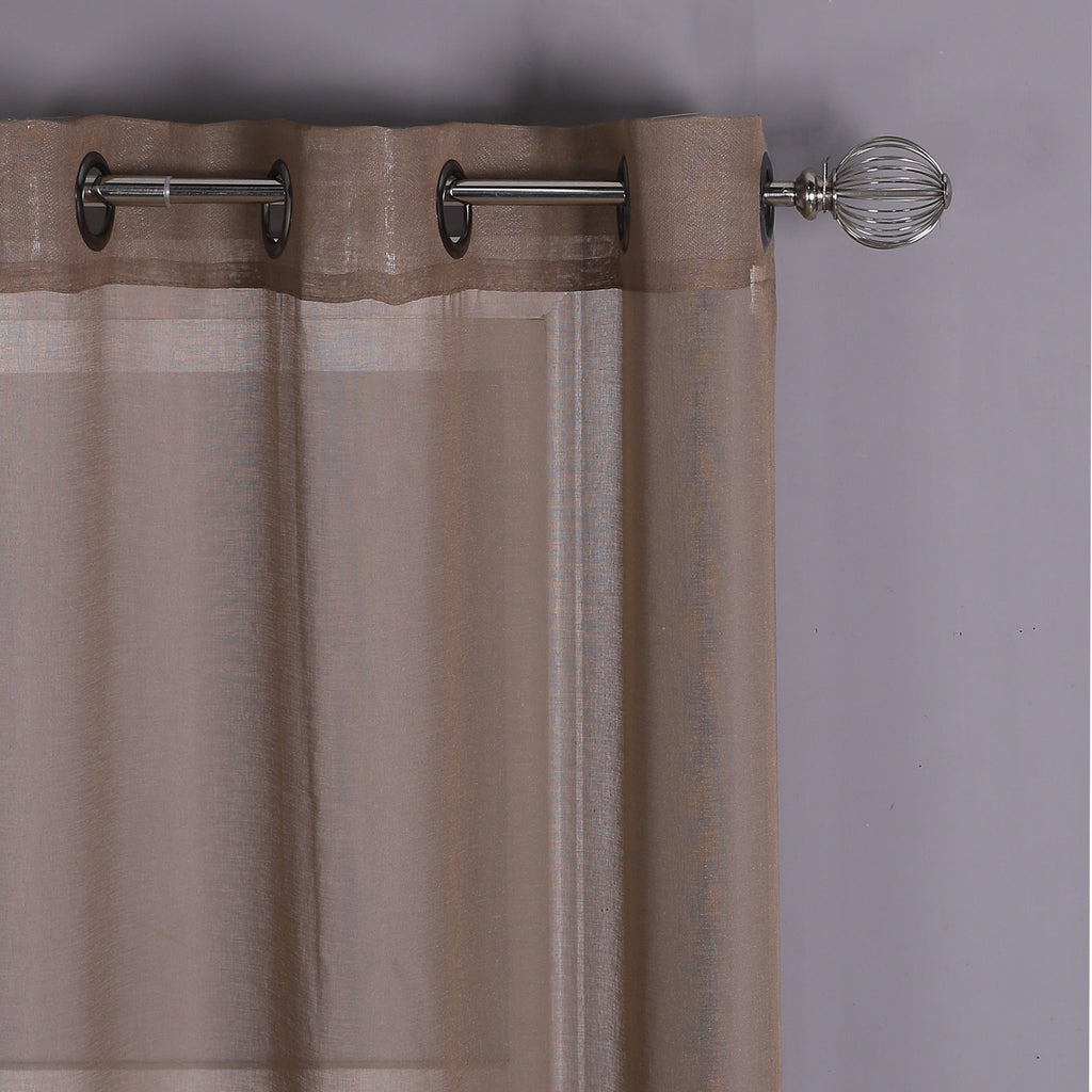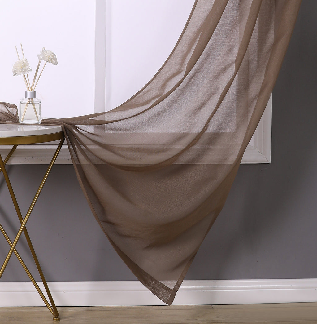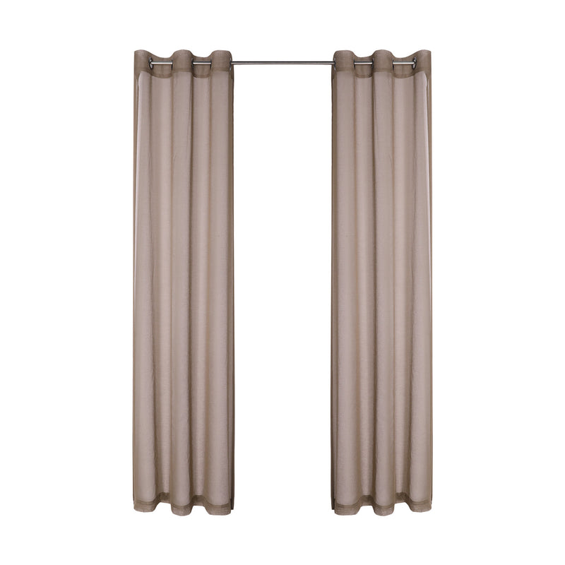 Take your sheers to the next level of elegance with the Sheffield 2-Pack Solid Sheer Grommet Window Panel. The airy sheer fabric with classic solid pattern adds elegance and charm to both modern and casual decor styles. These beautiful sheer panels are a great choice for anyone seeking a simple yet elegant look for their rooms. Perfect for filtering the light and create an amazing ambiance in your rooms. These panels are designed to let lots of natural light stream through the window to brighten up your room while still offering privacy. Deeply impress your friends, family, and guests by hanging these lovely sheer panels anywhere you would like to hand a beautiful panel and see how the flawless sheerness of this panel adds an ethereal touch of elegance to your home or party space. Perfect for your bedroom, living room, dining room, or any other living space. Made of sturdy and durable 100% polyester fabric that is built to last, providing endless beauty to your home. Resistant to wrinkles, shrinking, mold and mildew. It will look equally good in both formal and informal spaces. You can even add a twist on your decor by adding some printed curtains between the sheer panels, or use them alone for a touch of elegant simplicity. It comes with 6 gunmetal gray grommets to make the hanging process a breeze. It has 1.6 inch internal diameter which perfectly fits most decorative rods of your choice and saves your time of installation. CARE: Use cold temperature with gentle cycle. Use only non-chlorine bleach when needed. Tumble dry with low speed. Iron on the lowest setting if needed. MATERIAL: 100% Polyester. INCLUDES: (2) 38x84 Inches Panels. SIZE: 76x84 Inches. COLOR: Brown