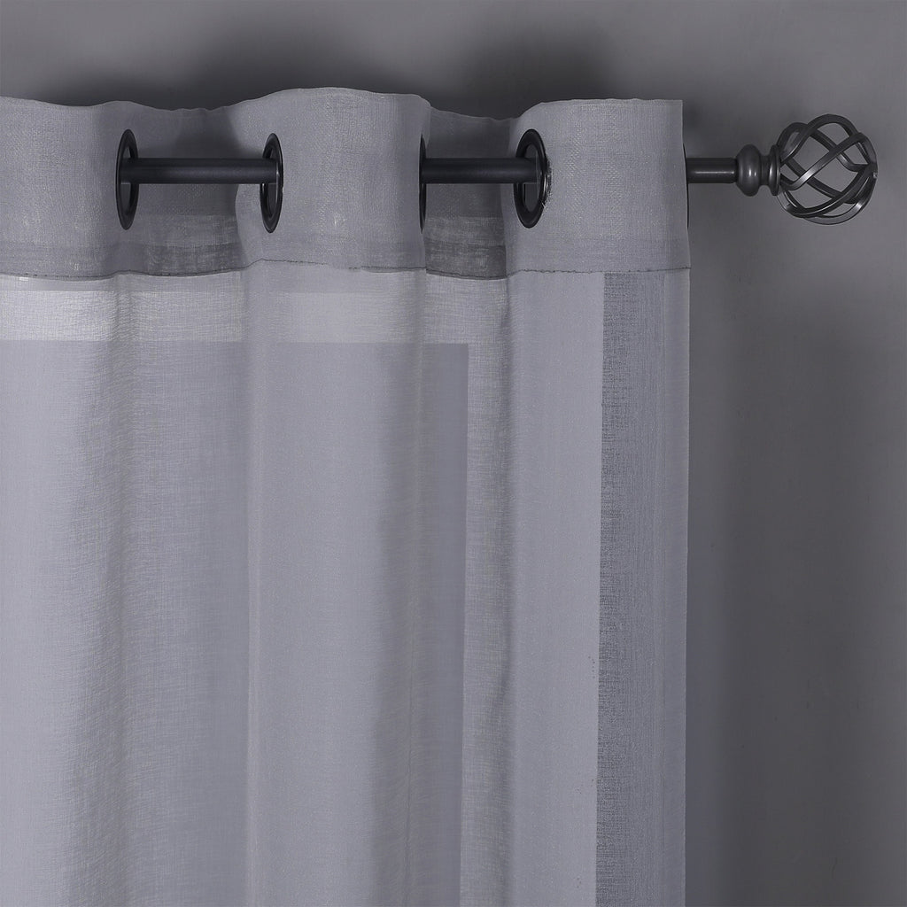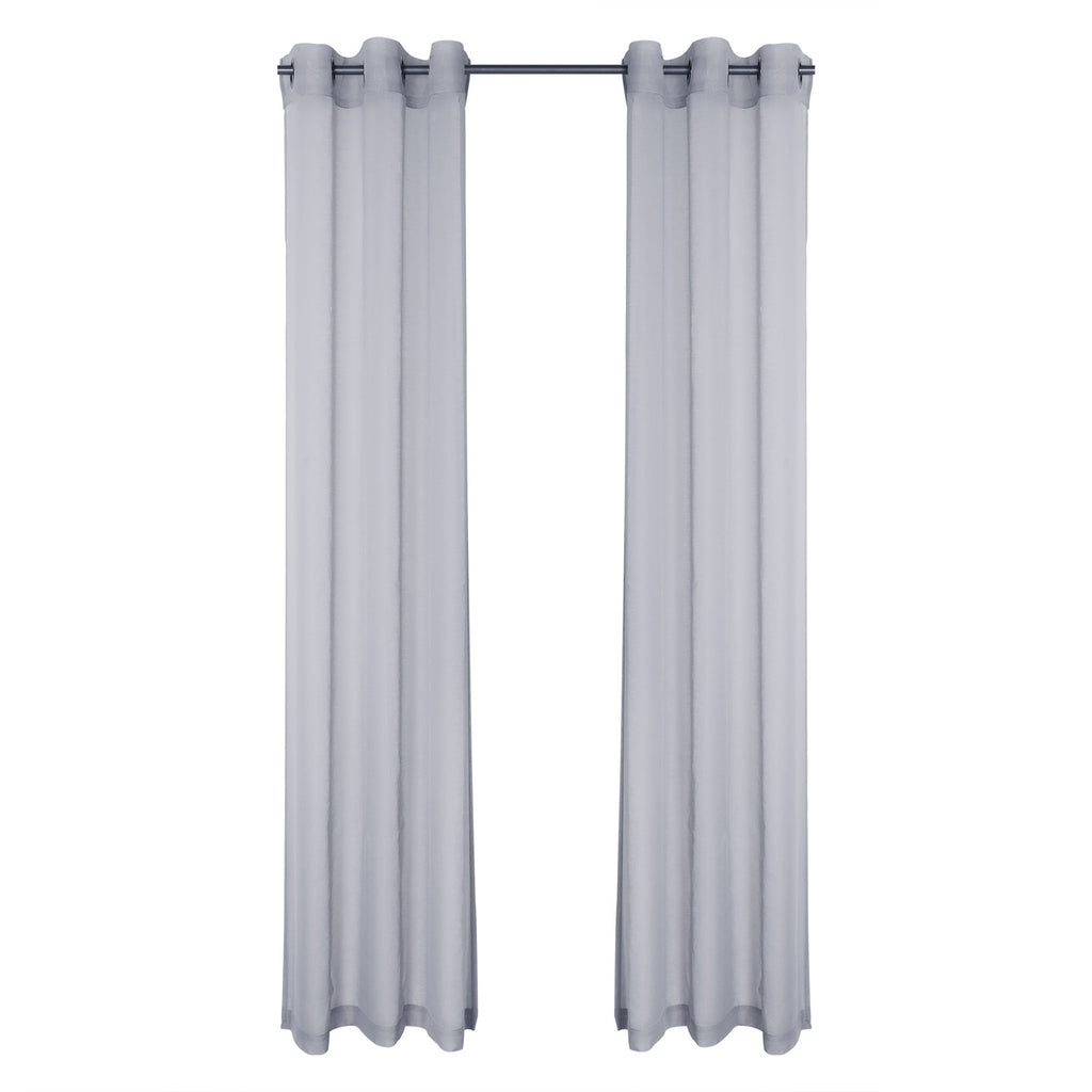 Take your sheers to the next level of elegance with the Sheffield 2-Pack Solid Sheer Grommet Window Panel. The airy sheer fabric with classic solid pattern adds elegance and charm to both modern and casual decor styles. These beautiful sheer panels are a great choice for anyone seeking a simple yet elegant look for their rooms. Perfect for filtering the light and create an amazing ambiance in your rooms. These panels are designed to let lots of natural light stream through the window to brighten up your room while still offering privacy. Deeply impress your friends, family, and guests by hanging these lovely sheer panels anywhere you would like to hand a beautiful panel and see how the flawless sheerness of this panel adds an ethereal touch of elegance to your home or party space. Perfect for your bedroom, living room, dining room, or any other living space. Made of sturdy and durable 100% polyester fabric that is built to last, providing endless beauty to your home. Resistant to wrinkles, shrinking, mold and mildew. It will look equally good in both formal and informal spaces. You can even add a twist on your decor by adding some printed curtains between the sheer panels, or use them alone for a touch of elegant simplicity. It comes with 6 gunmetal gray grommets to make the hanging process a breeze. It has 1.6 inch internal diameter which perfectly fits most decorative rods of your choice and saves your time of installation. CARE: Use cold temperature with gentle cycle. Use only non-chlorine bleach when needed. Tumble dry with low speed. Iron on the lowest setting if needed. MATERIAL: 100% Polyester. INCLUDES: (2) 38x84 Inches Panels. SIZE: 76x84 Inches. COLOR: Gray