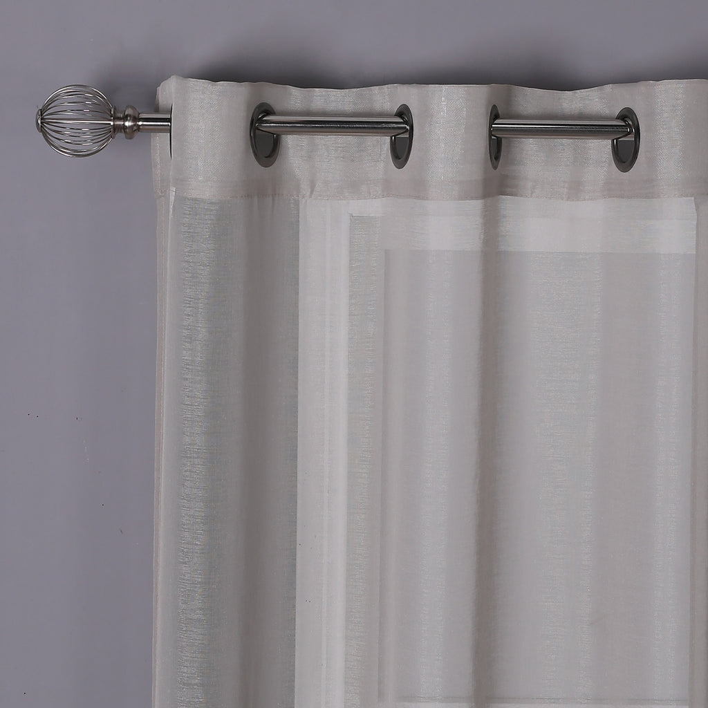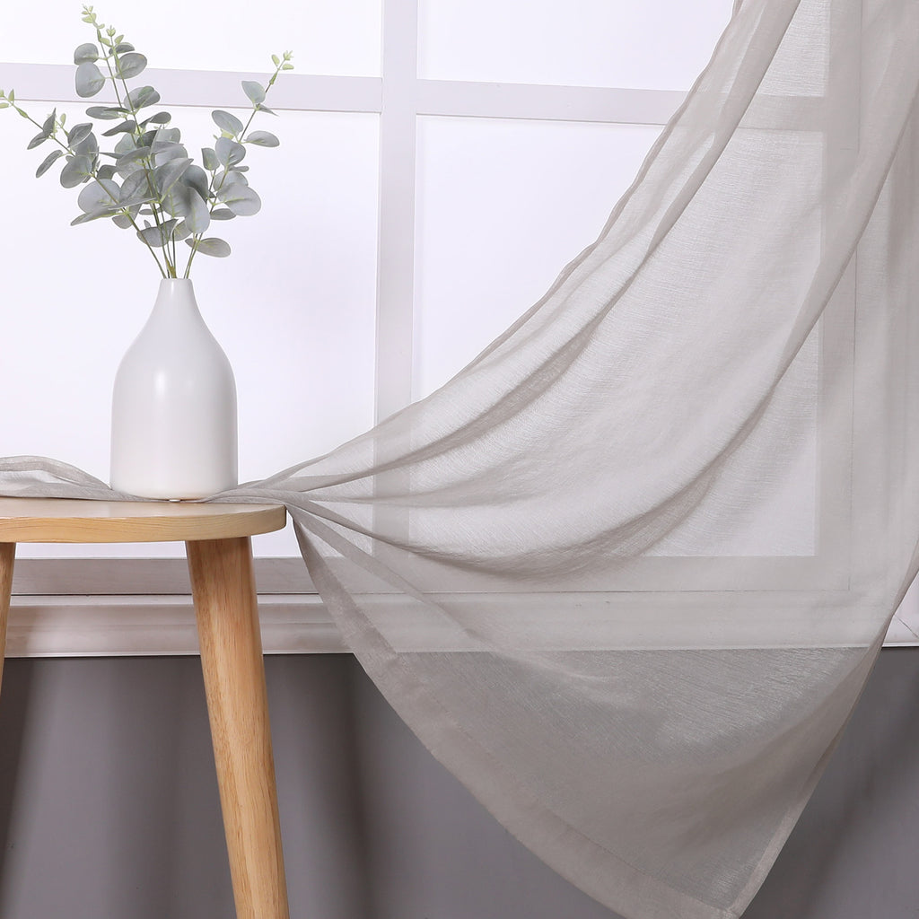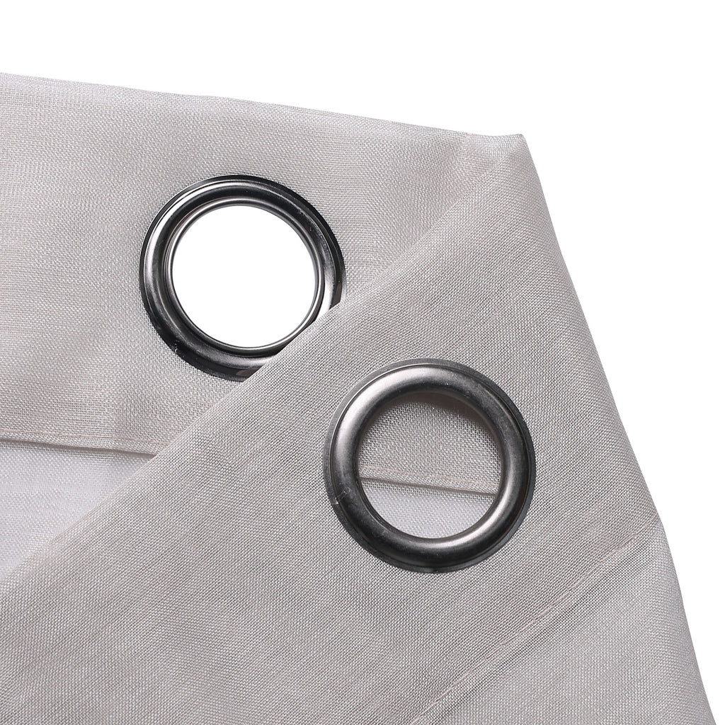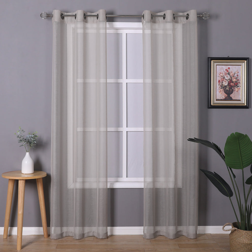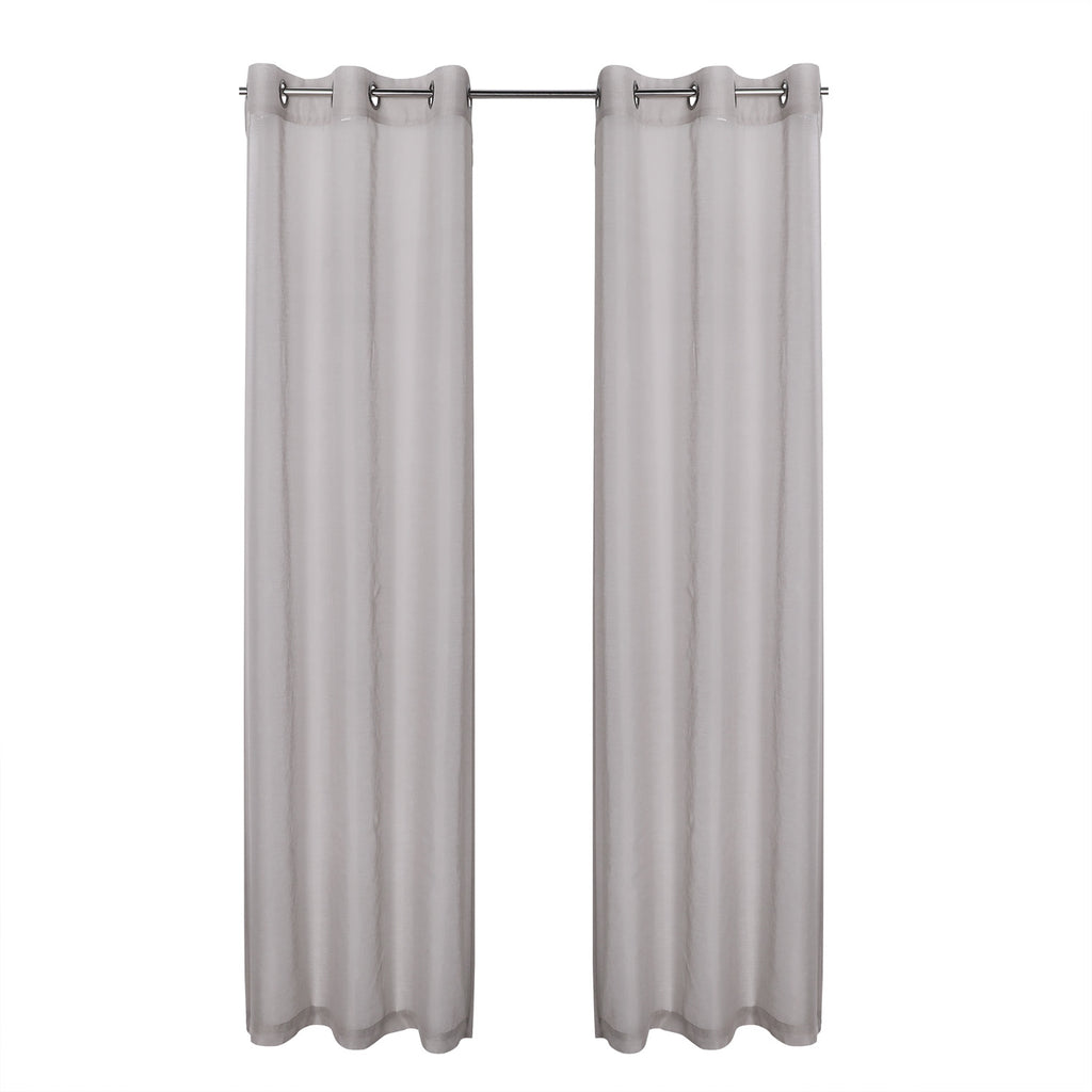 Take your sheers to the next level of elegance with the Sheffield 2-Pack Solid Sheer Grommet Window Panel. The airy sheer fabric with classic solid pattern adds elegance and charm to both modern and casual decor styles. These beautiful sheer panels are a great choice for anyone seeking a simple yet elegant look for their rooms. Perfect for filtering the light and create an amazing ambiance in your rooms. These panels are designed to let lots of natural light stream through the window to brighten up your room while still offering privacy. Deeply impress your friends, family, and guests by hanging these lovely sheer panels anywhere you would like to hand a beautiful panel and see how the flawless sheerness of this panel adds an ethereal touch of elegance to your home or party space. Perfect for your bedroom, living room, dining room, or any other living space. Made of sturdy and durable 100% polyester fabric that is built to last, providing endless beauty to your home. Resistant to wrinkles, shrinking, mold and mildew. It will look equally good in both formal and informal spaces. You can even add a twist on your decor by adding some printed curtains between the sheer panels, or use them alone for a touch of elegant simplicity. It comes with 6 gunmetal gray grommets to make the hanging process a breeze. It has 1.6 inch internal diameter which perfectly fits most decorative rods of your choice and saves your time of installation. CARE: Use cold temperature with gentle cycle. Use only non-chlorine bleach when needed. Tumble dry with low speed. Iron on the lowest setting if needed. MATERIAL: 100% Polyester. INCLUDES: (2) 38x84 Inches Panels. SIZE: 76x84 Inches. COLOR: Linen