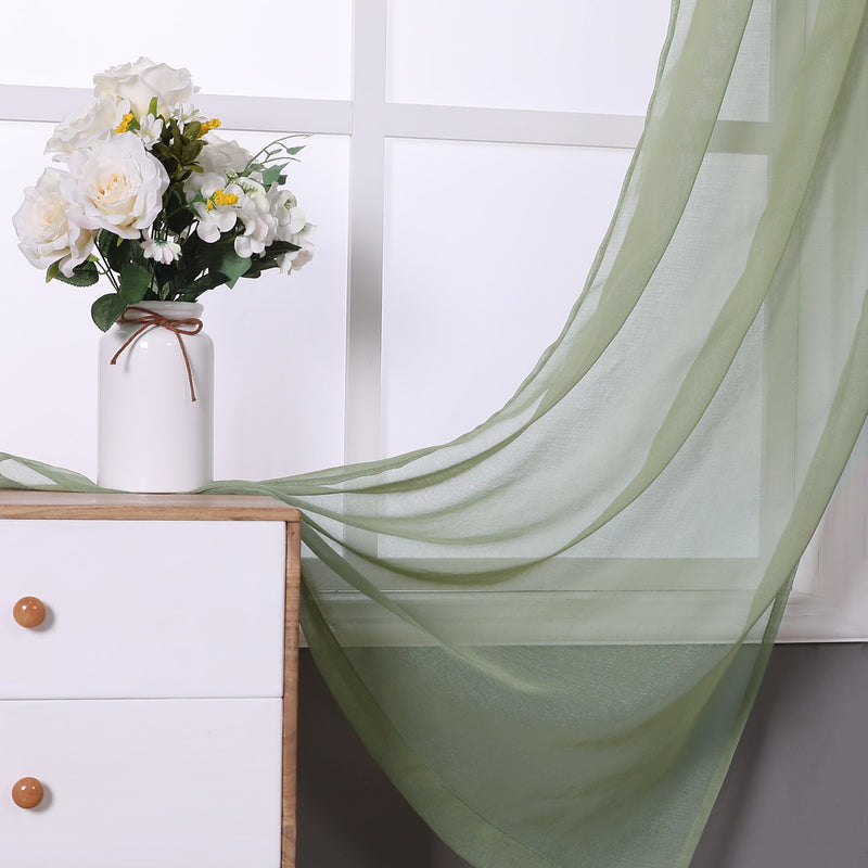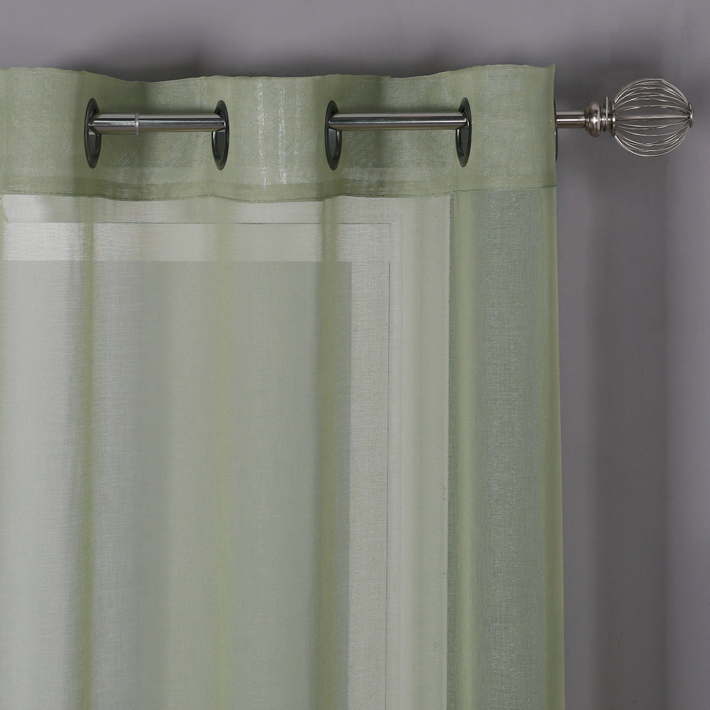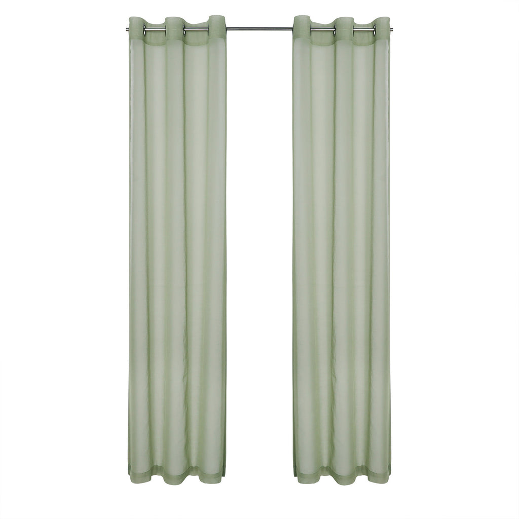 Take your sheers to the next level of elegance with the Sheffield 2-Pack Solid Sheer Grommet Window Panel. The airy sheer fabric with classic solid pattern adds elegance and charm to both modern and casual decor styles. These beautiful sheer panels are a great choice for anyone seeking a simple yet elegant look for their rooms. Perfect for filtering the light and create an amazing ambiance in your rooms. These panels are designed to let lots of natural light stream through the window to brighten up your room while still offering privacy. Deeply impress your friends, family, and guests by hanging these lovely sheer panels anywhere you would like to hand a beautiful panel and see how the flawless sheerness of this panel adds an ethereal touch of elegance to your home or party space. Perfect for your bedroom, living room, dining room, or any other living space. Made of sturdy and durable 100% polyester fabric that is built to last, providing endless beauty to your home. Resistant to wrinkles, shrinking, mold and mildew. It will look equally good in both formal and informal spaces. You can even add a twist on your decor by adding some printed curtains between the sheer panels, or use them alone for a touch of elegant simplicity. It comes with 6 gunmetal gray grommets to make the hanging process a breeze. It has 1.6 inch internal diameter which perfectly fits most decorative rods of your choice and saves your time of installation. CARE: Use cold temperature with gentle cycle. Use only non-chlorine bleach when needed. Tumble dry with low speed. Iron on the lowest setting if needed. MATERIAL: 100% Polyester. INCLUDES: (2) 38x84 Inches Panels. SIZE: 76x84 Inches. COLOR: Sage
