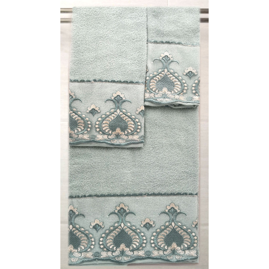 Add a touch of elegance to your bathroom decor with this beautiful Simpatico 3-Piece Floral Motif Embroidery Cotton Bath Towel Set. Each towel features an attached sheer band embroidered with floral design that is sure to create a beautiful and sophisticated look in your bathroom ensemble. Whether you use it to pamper yourself or reserve it for special guests they will make an ideal complement to any bathroom. Made of 100% cotton and offers lasting absorbency and superior durability. These super soft cotton towels will feel cozy and comfortable against your skin every time you use them. The towels are lint free, there will be no lint or fuzz sticking on your skin, and they will not fade when washing. This towel set is also machine washable for easy care for the perfect addition to any bathroom. CARE INSTRUCTIONS: Wash in cold water, wash colors separately. Do not bleach. Tumble dry low. MATERIAL: 100% Cotton. SIZE: Large: 24x48 Inches, Medium: 15x25 Inches and Small: 12x12 Inches. COLOR: Sage.
