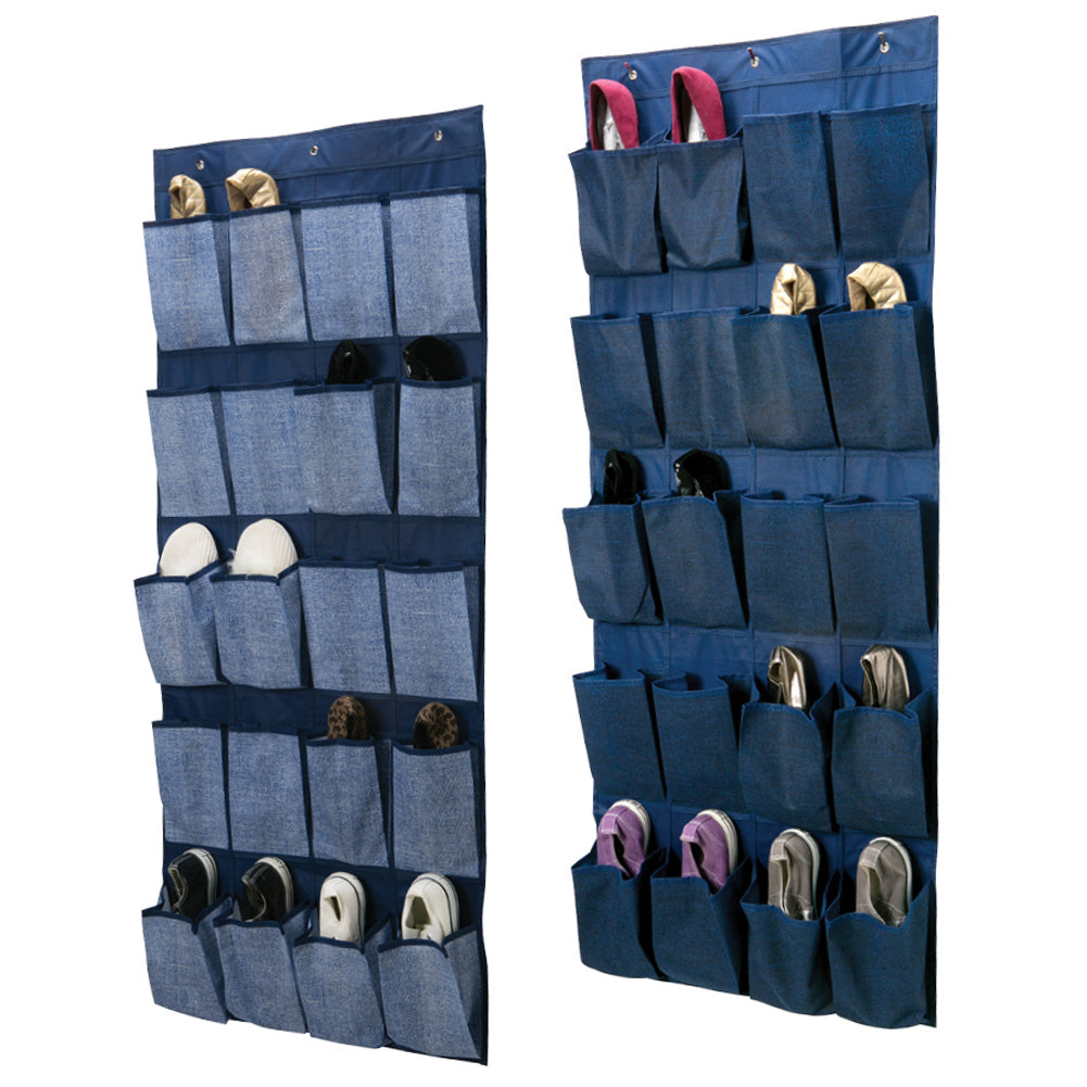 Free up floor space and double your storage space with the Simplify 20 Pocket Over The Door Shoe Caddy. This collapsible shoe caddy saves space and helps keep a closet organized. Protect and organize your favorite footwear. Perfect for heels, flats or other footwear reclaim storage space from behind your door. It’s breathable, non-woven material attaches securely to with hooks. Hang in your bedroom closet, over a door or bathroom and have everyone taking second glances at your stylish new organizer. Effortlessly blending with existing decor to give your decor a modern update. Instantly declutter your space, and organize your closet with the Simplify 20 Pocket Over The Door Shoe Caddy. COLOR: Colors may vary. DIMENSIONS: 22x53.5 Inches, 1 Shoe Caddy Included.