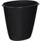 The 1.5 Gallon Oval Vanity Wastebasket combines a small footprint with a narrow profile. This discrete wastebasket is the perfect option for use next to a desk in an office, by the sink in a bathroom or kitchen, in the bedroom or stored in a craft room where narrow spaces require a space-efficient solution. A clean, oval aesthetic and modern design combined with a textured exterior and polished rim coordinate with any home, office, or bedroom décor. This item offers a tight nesting design and offers a 1.5 gallon capacity. This wastebasket also accommodates a standard plastic shopping bag. MATERIAL: Plastic. SIZE: 10x10x5 Inches. COLOR: Black