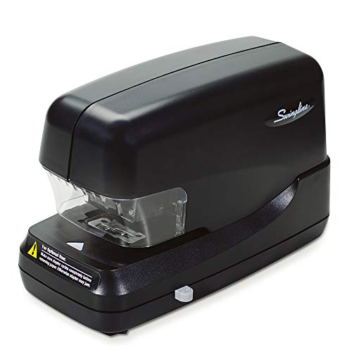 With the speed and exceptional stamina of the Swingline High-Capacity Electric Stapler, productivity is the first priority! This tough, AC-powered electric stapler has superior machine engineering for years of jam-free, heavy use. Designed for reliable productivity and speed, the Swingline High Capacity Electric Stapler is capable of delivering 5,000 staples without reloading. With a compact and efficient low-profile design, the stapler can handle staple jobs of up to 70 sheets of 20-paper with exceptional stamina. Adding to its reliability as a large office work horse, this staple machine features integrated suction cups that provide extra stability and helps avoid skidding or unnecessary paper marring. A precision adjustment guide is also included for perfect alignments. Engineered for years of heavy use, the stapler is comes pre-packed with a 5,000 staple cartridge (Swingline # 69495), so you’re ready to start stapling. The flat clinch stapling mechanism fastens up to 70 sheets of 20-pound paper per staple, for easy, neat stacking. The patented cartridge technology delivers 5,000 staples without the need for a refill and the suction cups on the stapler base keep it securely in place during use. With superior machine engineering, this durable electric stapler is built to withstand years of heavy use. Designed with productivity in mind, this stapler provides the speed and exceptional stamina needed to keep up in any busy workplace. Sleek, simple stapler provides superior stapling in a convenient package. A precision stapling guide assists with accuracy for perfect staple placement every time. A flat clinch staple mechanism allows for easy, neat stacking. COLOR: Black. DIMENSIONS: Swingline High-Capacity Electric Stapler. CONTENTS: Stapler, and 5,000-Staple Cartridge.