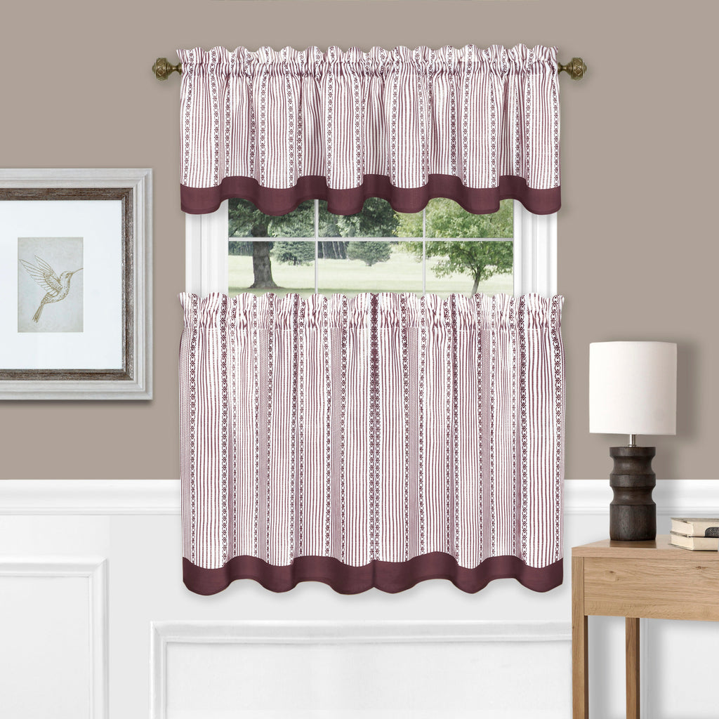 Westport 3-Piece Printed Kitchen Curtain Set, Burgundy, Tiers 58x36, Valance 58x14 Inches